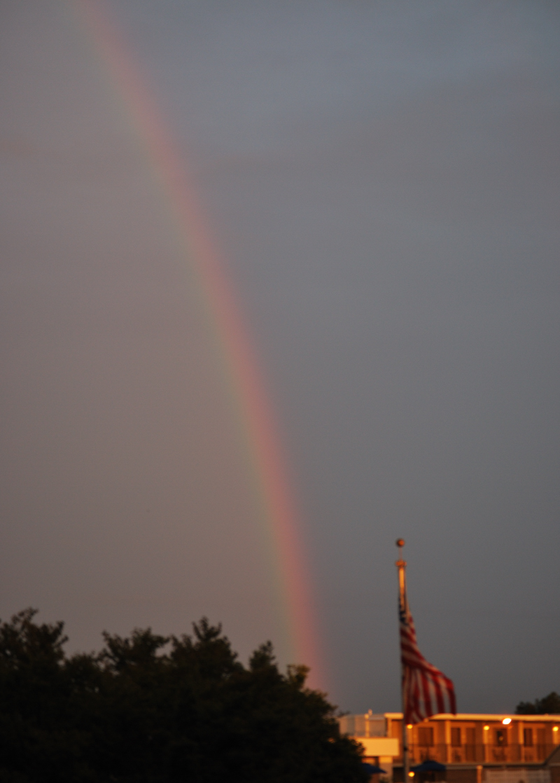 Even though it rained most of the day, God must have been smiling over the Delaware Gay Pride Festival held Saturday, September 17, 2011 in Rehoboth. Late in the afternoon, a perfect rainbow — visible complete, from end to end — could be seen looking east toward the ocean.