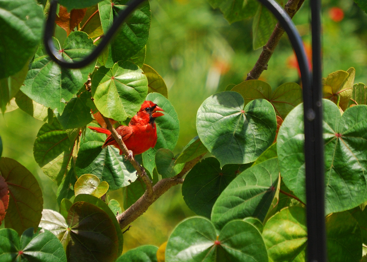 I wasn’t sure how successful my first birdfeeder would be when I set it up yesterday morning. I wasn’t disappointed! Within forty-five minutes, several female cardinals were the first to baptize the feeder, placed in the middle of our back yard, not far from a small tree. A male cardinal followed, and then even a blue jay — which I hadn’t seen in our yard before! Others came throughout the day, too. Finally, a little rabbit was up early this morning, checking things out.